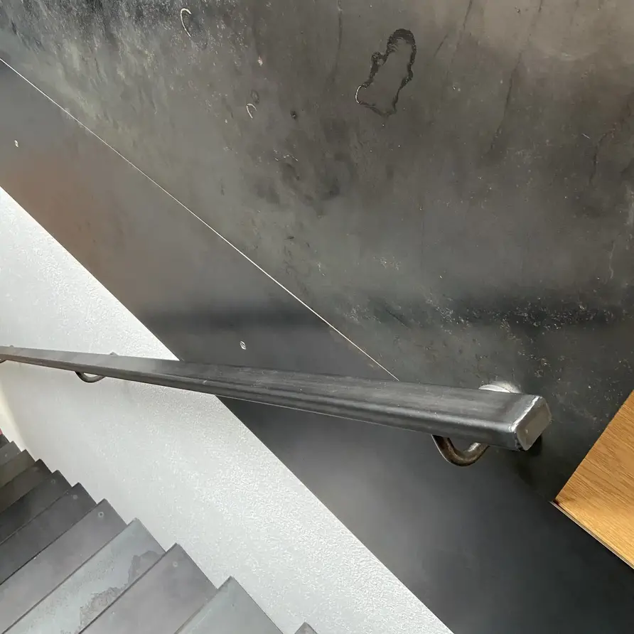 Une main courante rectangulaire en acier de 40x20 mm. Une rampe escalier « carrée » moderne et robuste au look industriel, avec support de type 1. Cette main courante d'escalier est fabriquée sur mesure et livrée avec support + matériel de montage. Lire plus