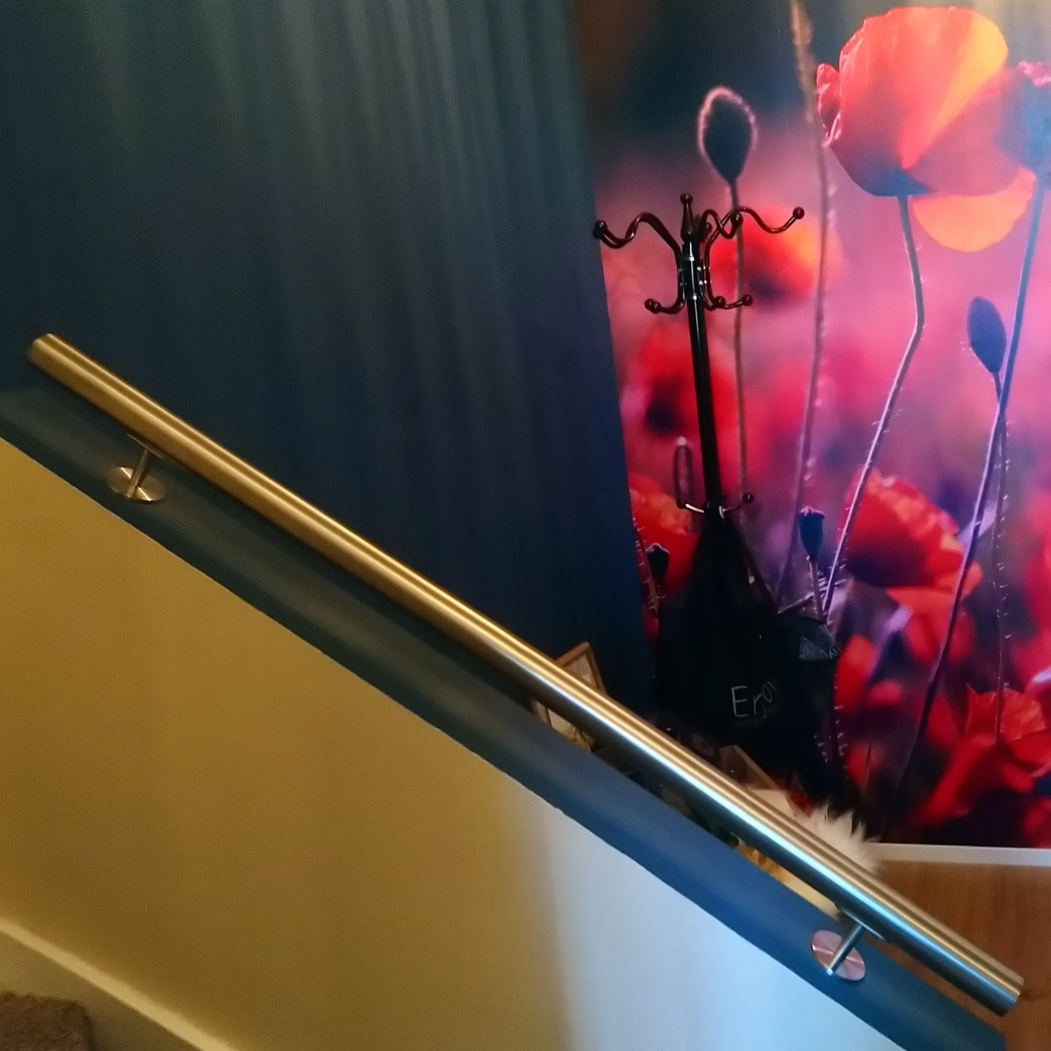 Une main courante inox ronde en acier inoxydable 304 brossé, d'un diamètre de 42,4 mm. Une rampe escalier ronde classique au look moderne, avec support de type 5. Cette main courante d'escalier est fabriquée sur mesure et livrée avec support + matériel de Lire plus