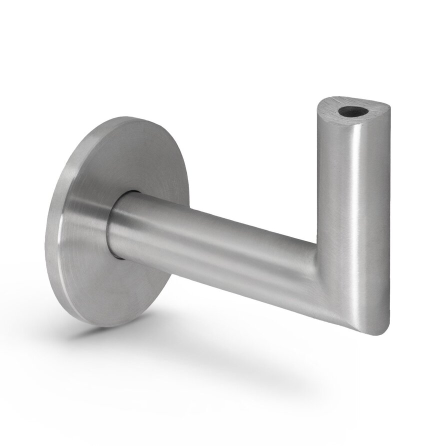 Support main courante inox - type 3 luxueux - rond - pour une rampe escalier ronde - acier inoxydable 304 brossé (pour l'intérieur). Le support mural inox pour main courante de type 3 luxueux rond est un support élégant avec un design rond et un montage serré (avec vis à double filetage) sans vis de fixation apparentes. Ce support rond convient à une main courante ronde avec un diamètre d'environ 42,4 mm. Ce support rampe escalier inox est fabriqué en acier inoxydable 304 - adapté à un usage intérieur - et présente une finition légèrement brossée. Le matériel de fixation pour le montage mural est fourni.