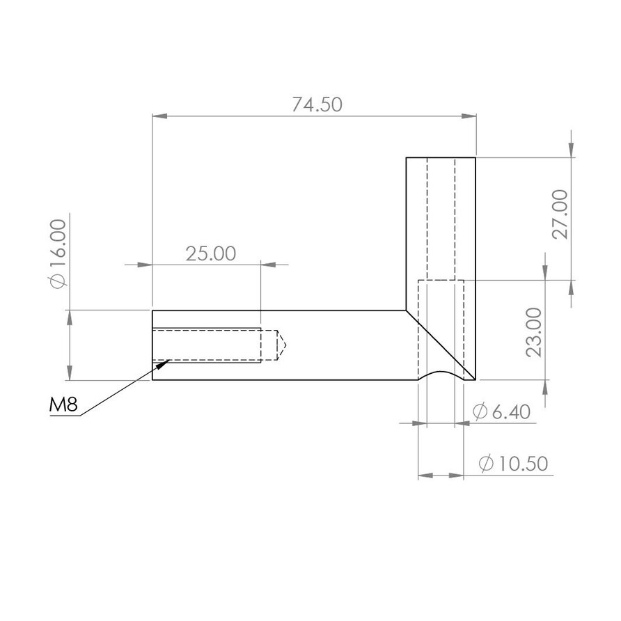 Fixation à la main courante : Avec 2 vis. Ces pattes ne sont PAS fournies dans le cas d'un support séparé, car le choix des vis correctes dépend de la rampe escalier spécifique (et ceci n'est pas connu).
